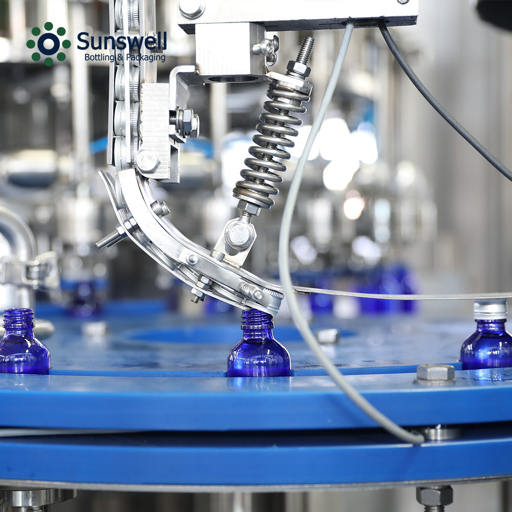 Машина для розлива напитков в стеклянные бутылки интегрирует функции ополаскивания, розлива и укупорки. Основанная на