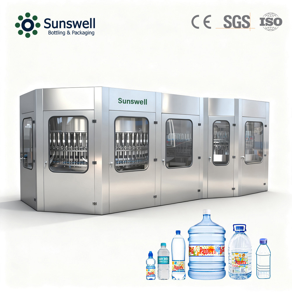 Моноблочная машина для розлива воды 3 в 1 может применяться для производства минеральной воды, очищенной воды, ароматизированной воды и слабоалкогольных напитков и т. д. Машина для розлива воды может использоваться для различных линий розлива воды.